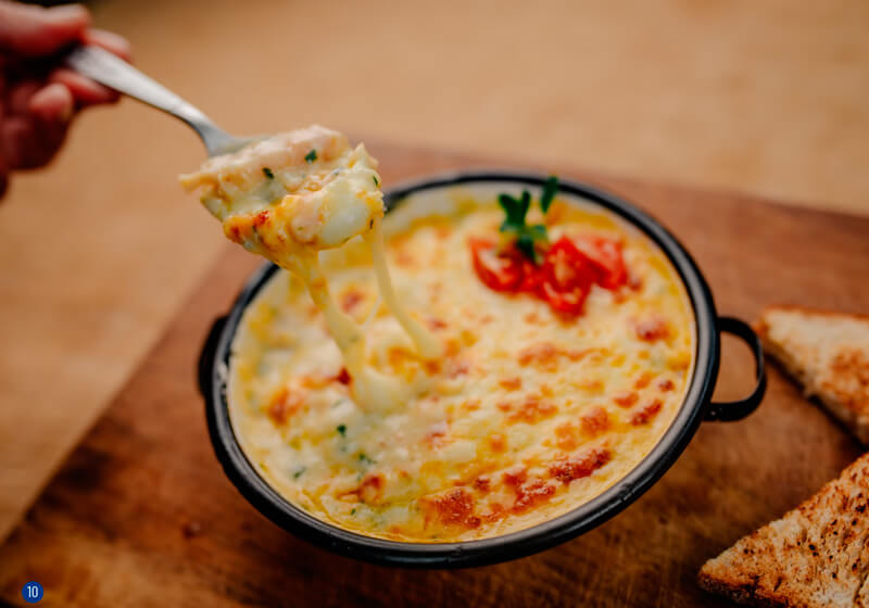 Sudar la cebolla y el ajo en mantequilla hasta que estén transparentes. Agregar las navajuelas enteras y mezclar, dejar que tomen temperatura, luego apagar con vino blanco e incorporar el pan y mezclar. Agregar la crema, el queso y el perejil, dejar cocinar por 5 minutos. Porcionar en pocillos de greda, recipientes para horno o en una asadera, poner queso rallado encima y llevar al horno para gratinar.